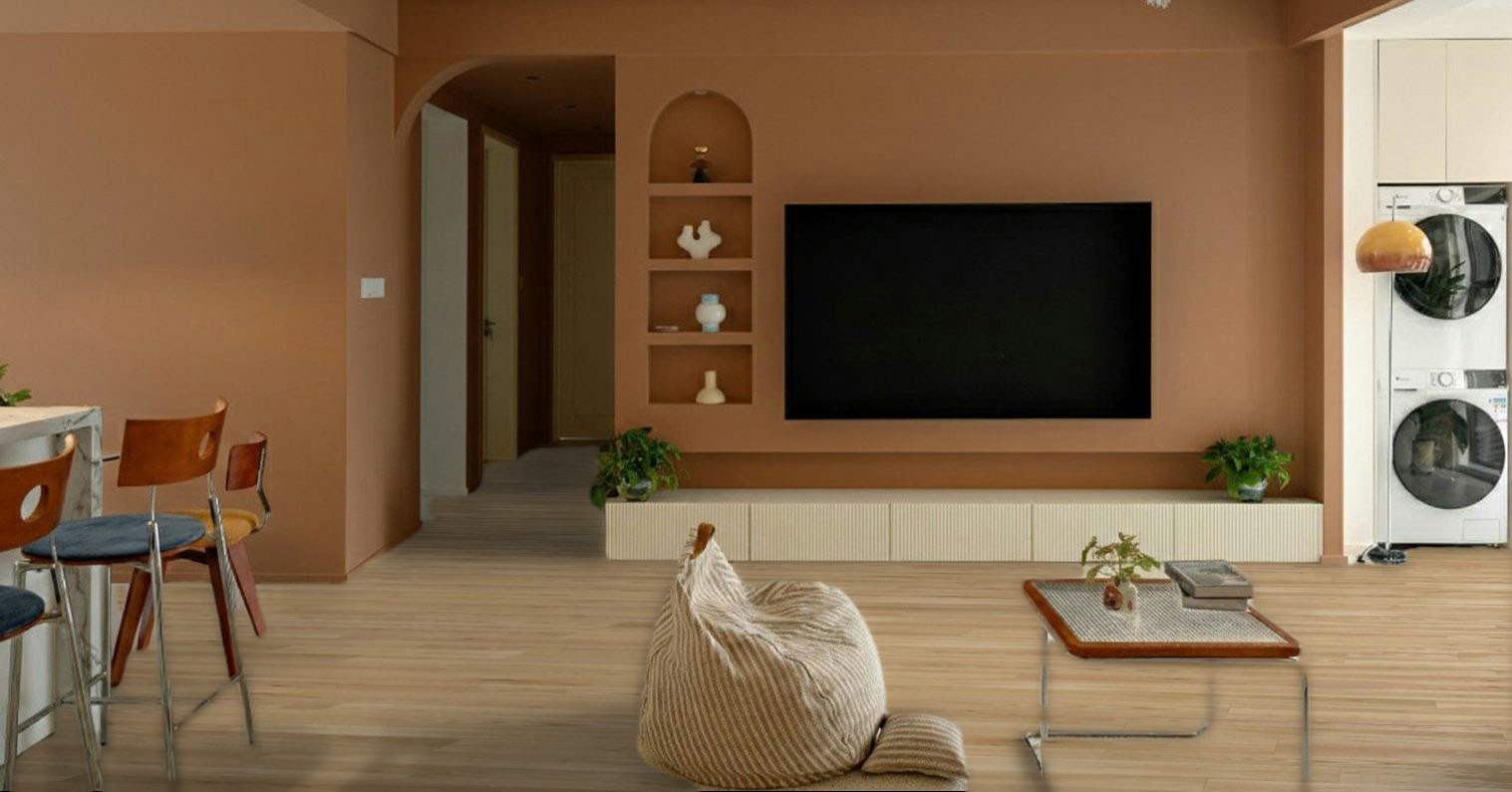 Se l’obiettivo è creare un rifugio accogliente, la collezione Armonico offre la base perfetta per abbinamenti basati sui colori della terra. Accostare un parquet dalle sfumature naturali, come quelle più calde della collezione Armonico, a pareti color ocra, terracotta o fango permette di generare un’atmosfera calda e rilassante. La neutralità equilibrata di Armonico funge da base ideale per chi vuole sperimentare con i colori caldi senza appesantire l’ambiente. In questo contesto, le lunghezze miste degli elementi Salis rompono la monotonia cromatica, introducendo un movimento naturale che arricchisce il design complessivo della stanza.
